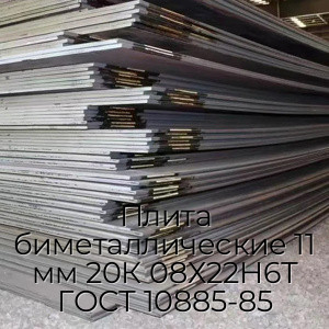 Плита биметаллические 11 мм 20К 08Х22Н6Т ГОСТ 10885-85 широко используется при изготовлении теплообменников, резервуаров, трубопроводов, корпусов и технологического оборудования, где предъявляются высокие требования к прочности и надёжности в условиях воздействия агрессивных сред.