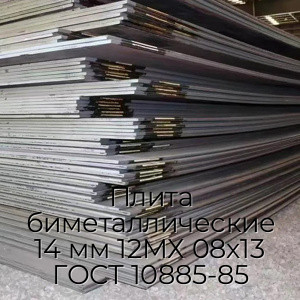 Плита биметаллические 14 мм 12МХ 08х13 ГОСТ 10885-85 широко используется при изготовлении теплообменников, резервуаров, трубопроводов, корпусов и технологического оборудования, где предъявляются высокие требования к прочности и надёжности в условиях воздействия агрессивных сред.