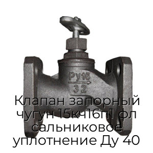 - Клапан запорный чугун 15кч16п1 фл сальниковое уплотнение Ду 40 N94579