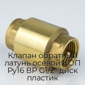 - Клапан обратный латунь осевой КОП Ру16 ВР G1/2" диск пластик N94644
