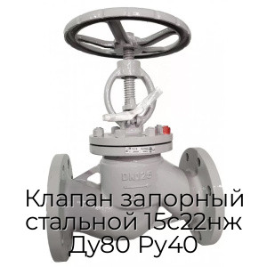 - Клапан запорный стальной 15с22нж Ду80 Ру40 N94636