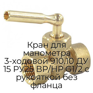 - Кран для манометра 3-ходовой 910.10 ДУ 15 РУ25 ВР/НР G1/2 с рукояткой без фланца N94571