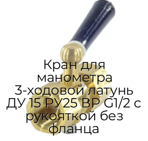 - Кран для манометра 3-ходовой латунь ДУ 15 РУ25 ВР G1/2 с рукояткой без фланца N94562