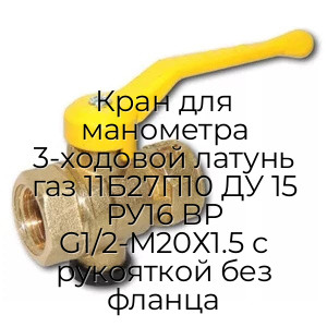- Кран для манометра 3-ходовой латунь газ 11Б27П10 ДУ 15 РУ16 ВР G1/2-М20Х1.5 с рукояткой без фланца N94558