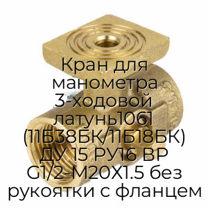 - Кран для манометра 3-ходовой латунь1061 (11Б38БК/11Б18БК) ДУ 15 РУ16 ВР G1/2-М20Х1.5 без рукоятки с фланцем N94563