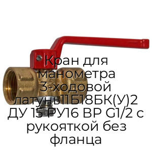 - Кран для манометра 3-ходовой латунь11Б18БК(У)2 ДУ 15 РУ16 ВР G1/2 с рукояткой без фланца N94548