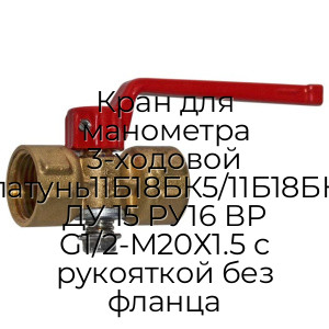 - Кран для манометра 3-ходовой латунь11Б18БК5/11Б18БК ДУ 15 РУ16 ВР G1/2-М20Х1.5 с рукояткой без фланца N94547