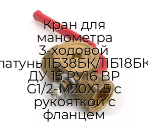 - Кран для манометра 3-ходовой латунь11Б38БК/11Б18БК ДУ 15 РУ16 ВР G1/2-М20Х1.5 с рукояткой с фланцем N94545