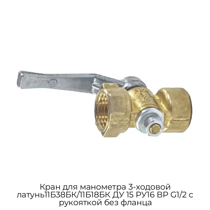 - Кран для манометра 3-ходовой латунь11Б38БК/11Б18БК ДУ 15 РУ16 ВР G1/2 с рукояткой без фланца N94544