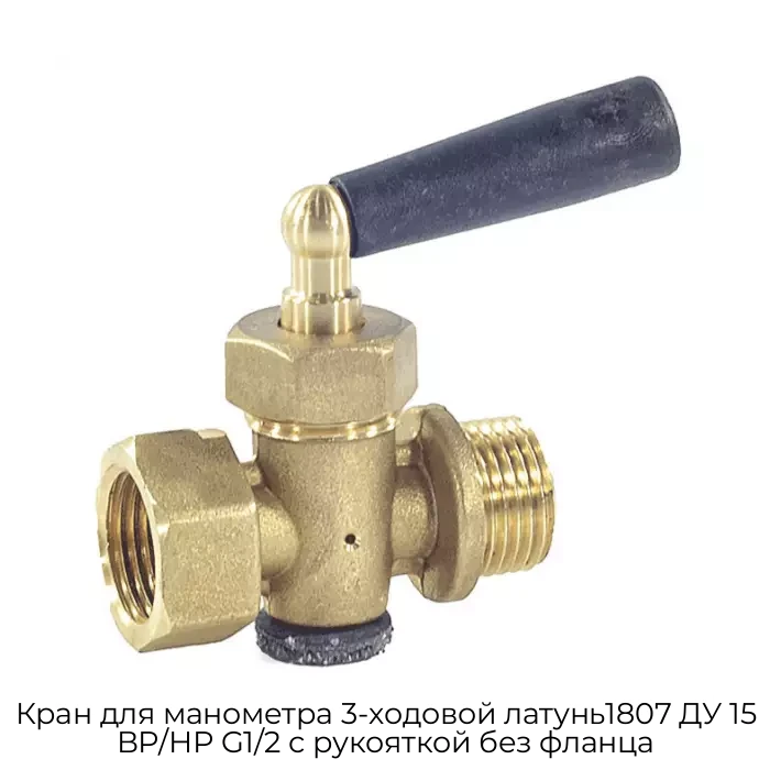 - Кран для манометра 3-ходовой латунь1807 ДУ 15 ВР/НР G1/2 с рукояткой без фланца N94542