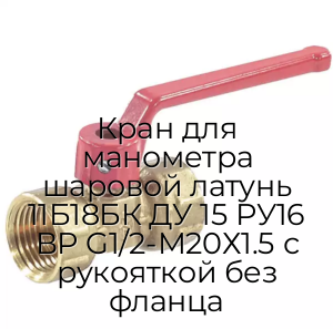 - Кран для манометра шаровой латунь 11Б18БК ДУ 15 РУ16 ВР G1/2-М20Х1.5 с рукояткой без фланца N94557
