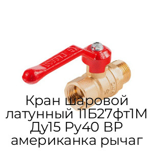 - Кран шаровой латунный 11Б27фт1М Ду15 Ру40 ВР американка рычаг N94367