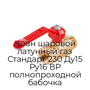 - Кран шаровой латунный газ Стандарт 230 Ду15 Ру16 ВР полнопроходной бабочка N94399