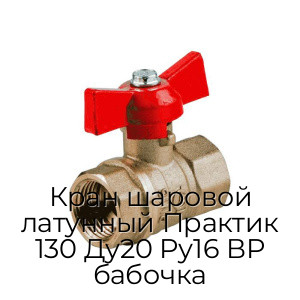 - Кран шаровой латунный Практик 130 Ду20 Ру16 ВР бабочка N94411