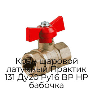 - Кран шаровой латунный Практик 131 Ду20 Ру16 ВР НР бабочка N94414