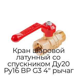 Кран шаровой латунный со спускником Ду20 Ру16 ВР G3 4" рычаг - продажа оптом и в розницу по цене от 395 руб. в Москве. Доставка по Москве и всей России