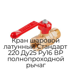 - Кран шаровой латунный Стандарт 220 Ду25 Ру16 ВР полнопроходной рычаг N94422
