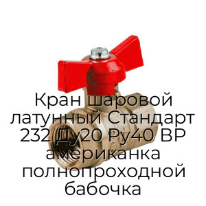 - Кран шаровой латунный Стандарт 232 Ду20 Ру40 ВР американка полнопроходной бабочка N94438