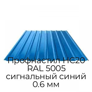 Профнастил НС20 RAL 5005 сигнальный синий 0.6 мм - продажа оптом и в розницу по цене от 984 руб. в Москве. Доставка по Москве и всей России
