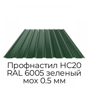 Профнастил НС20 RAL 6005 зеленый мох 0.5 мм - продажа оптом и в розницу по цене от 777 руб. в Москве. Доставка по Москве и всей России