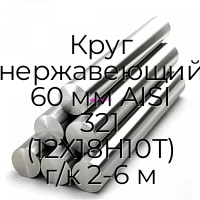 - Круг нержавеющий 60 мм AISI 321 (12Х18Н10Т) г/к 2-6 м N4474
