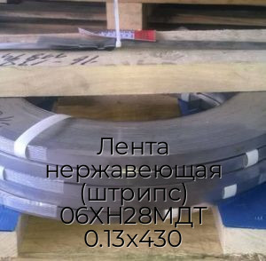Лента нержавеющая (штрипс) 06ХН28МДТ 0.13х430 изготовлена в соответствии с актуальной технической документацией ГОСТ.