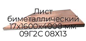 Лист биметаллический 17х1600х4000 мм 09Г2С 08Х13 является биметаллическим листом, сочетающим свойства различных металлов для повышения ресурса изделий.