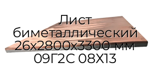 Компания «Арион-Металл» предлагает купить биметаллический лист размером 26х2800х3300 мм из сталей марок 09Г2С; 08Х13 с доставкой по Москве и регионам. Оформить заказ можно через наш сайт или по телефону. Мы всегда поддерживаем широкий ассортимент на складе, предлагаем конкурентоспособные цены и оперативную доставку.