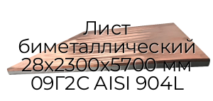 Лист биметаллический 28х2300х5700 мм 09Г2С AISI 904L представляет собой биметаллический лист, используемый в конструкциях с повышенными требованиями к механической и термической устойчивости.