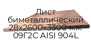 Лист биметаллический 28х2600х3300 мм 09Г2С AISI 904L представляет собой биметаллический лист, используемый в конструкциях с повышенными требованиями к механической и термической устойчивости.