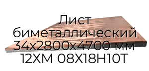 Лист биметаллический 34х2800х4700 мм 12ХМ 08Х18Н10Т относится к листовому прокату биметаллического типа, рассчитанному на длительную работу под нагрузкой.