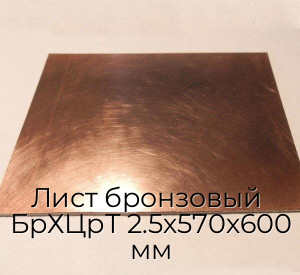 Лист бронзовый БрХЦрТ 2.5х570х600 мм — поставка оптом и в розницу со склада «Арион-Металл». Доставка по Москве и всей России. Сертификаты на металл. Точный вес.