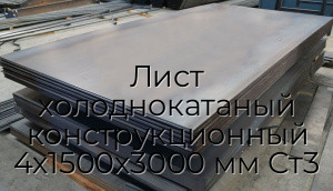 Компания «Арион-Металл» предлагает купить холоднокатаный конструкционный лист марки Ст3 размером 4х1500х3000 мм с доставкой по Москве и регионам. Оформить заказ можно через наш сайт или по телефону. Мы всегда поддерживаем широкий ассортимент на складе, предлагаем конкурентоспособные цены и оперативную доставку.