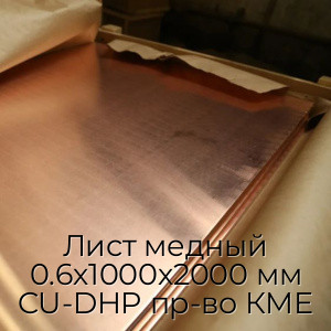 Лист медный 0.6х1000х2000 мм CU-DHP пр-во КМЕ - продажа оптом и в розницу по цене от 1105 руб. в Москве. Доставка по Москве и всей России