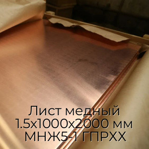 Лист медный 1.5х1000х2000 мм МНЖ5-1 ГПРХХ - продажа оптом и в розницу по цене от 1265 руб. в Москве. Доставка по Москве и всей России
