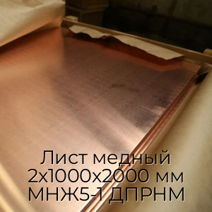 Лист медный 2х1000х2000 мм МНЖ5-1 ДПРНМ - продажа оптом и в розницу по цене от 1307 руб. в Москве. Доставка по Москве и всей России