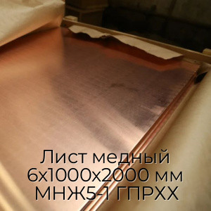 Лист медный 6х1000х2000 мм МНЖ5-1 ГПРХХ - продажа оптом и в розницу по цене от 1337 руб. в Москве. Доставка по Москве и всей России