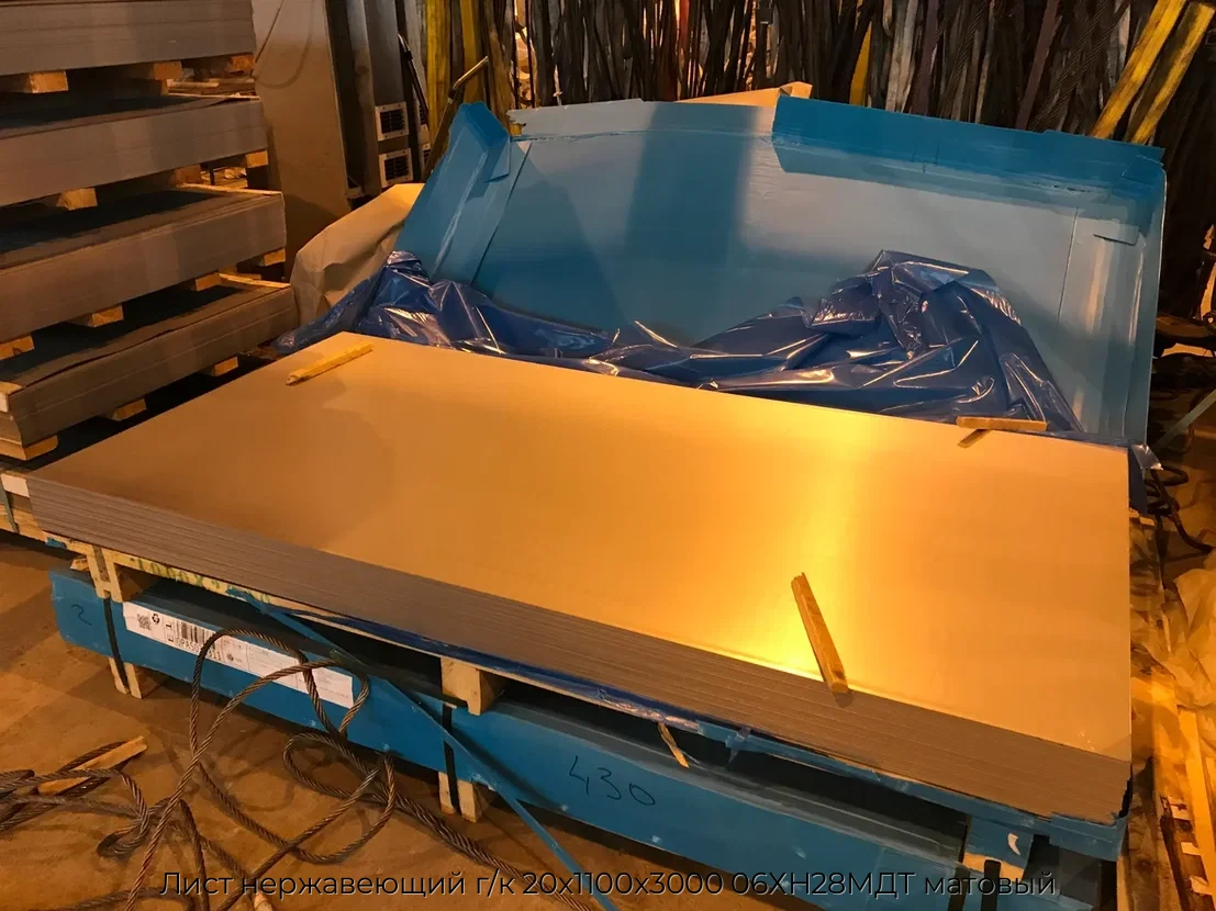 Основные характеристики Лист нержавеющий г/к 20х1100х3000 06ХН28МДТ матовый