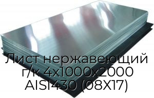 Лист нержавеющий 4х1000х2000 AISI 430 (08Х17) представляет собой один из самых востребованных видов листового металлопроката. Имеет прямоугольную форму, изготавливается в соответствии с ГОСТ 16523-97 с помощью деформации под давлением металла, находящегося в горячем состоянии. Материалом его изготовления выступает универсальная аустенитная сталь, дополнительная обработка поверхности не производится. Лист имеет следующие размеры: длина - 2000 мм, ширина - 1000 мм, толщина - 4 мм.