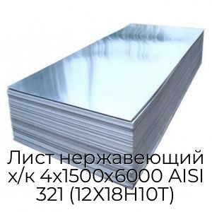 Лист нержавеющий 4х1500х6000 AISI 321 (08Х18Н10Т, 12Х18Н10Т) представляет собой один из самых востребованных видов листового металлопроката. Имеет прямоугольную форму, изготавливается в соответствии с ГОСТ 5582-75, ГОСТ 16523-97, ГОСТ 19904-90 с помощью деформации под давлением металла, находящегося в горячем состоянии. Материалом его изготовления выступает универсальная аустенитная сталь, дополнительная обработка поверхности не производится. Лист имеет следующие размеры: длина - 6000 мм, ширина - 1500 мм, толщина - 4 мм.
