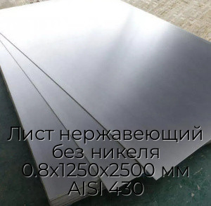 Основные характеристики Лист нержавеющий без никеля 0.8х1250х2500 мм AISI 430