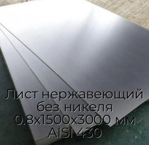 Основные характеристики Лист нержавеющий без никеля 0.8х1500х3000 мм AISI 430