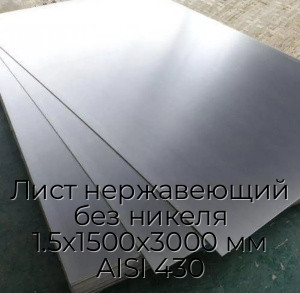 Основные характеристики Лист нержавеющий без никеля 1.5х1500х3000 мм AISI 430