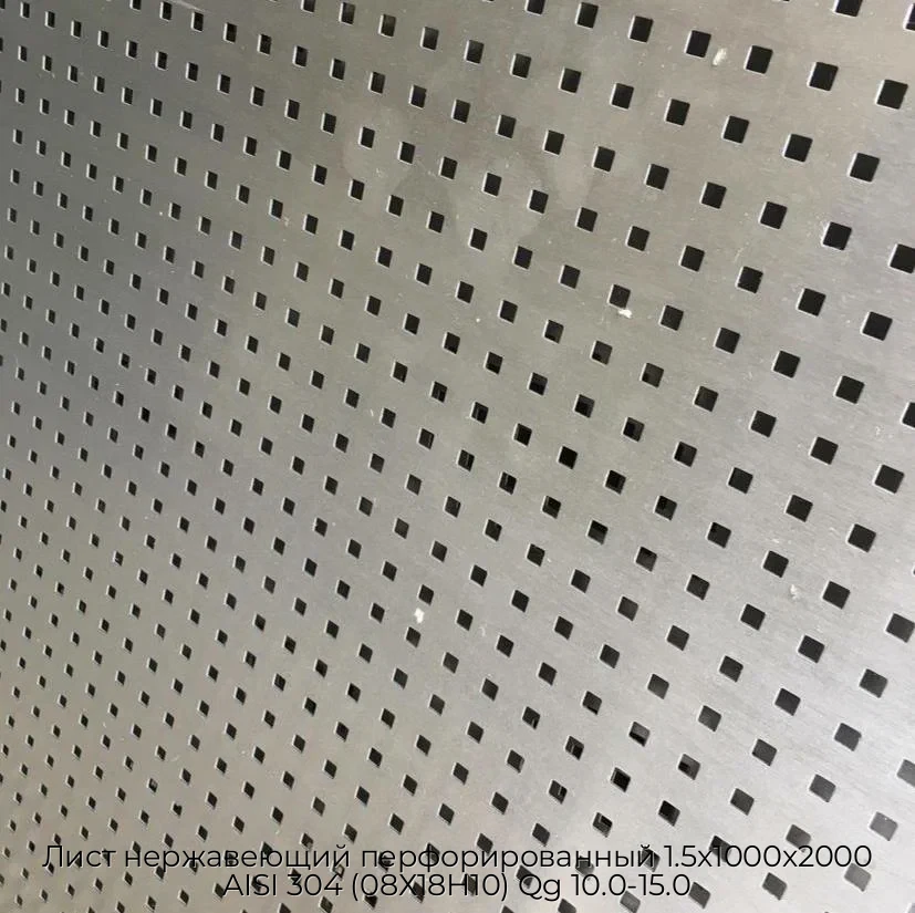 Основные характеристики Лист нержавеющий перфорированный 1.5х1000х2000 AISI 304 (08Х18Н10) Qg 10.0-15.0