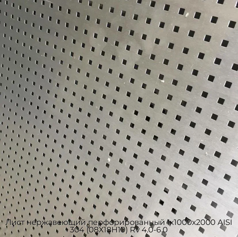 Основные характеристики Лист нержавеющий перфорированный 1х1000х2000 AISI 304 (08Х18Н10) Rv 4.0-6.0