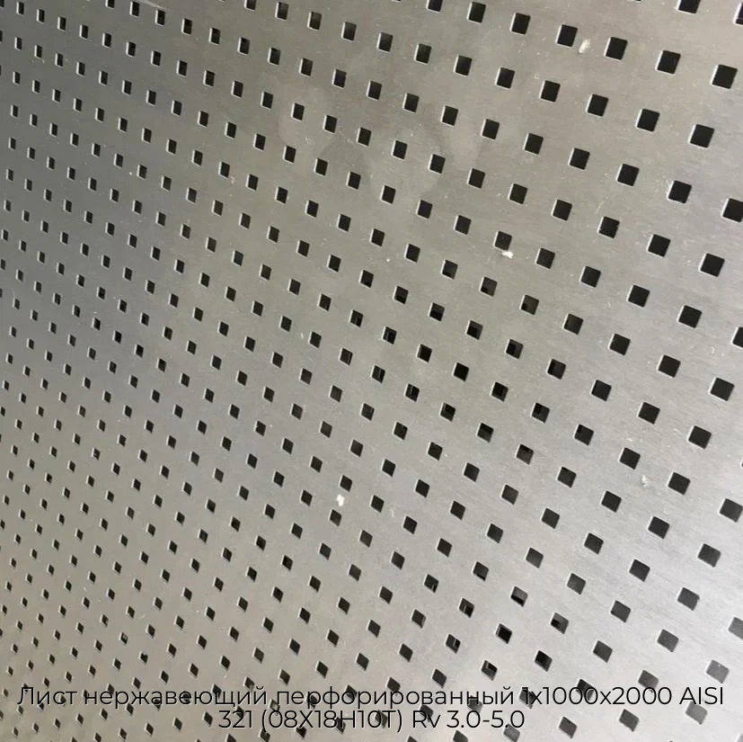 Основные характеристики Лист нержавеющий перфорированный 1х1000х2000 AISI 321 (08Х18Н10Т) Rv 3.0-5.0