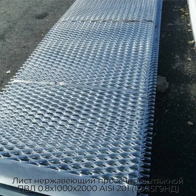 Основные характеристики Лист нержавеющий просечно-вытяжной ПВЛ 0.8х1000х2000 AISI 201 (12Х15Г9НД)