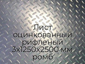 - Лист оцинкованный рифленый 3х1250х2500 мм ромб N99305