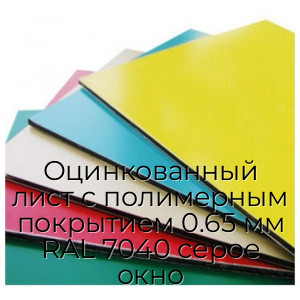 Преимущества Оцинкованный лист с полимерным покрытием 0.65 мм RAL 7040 серое окно: