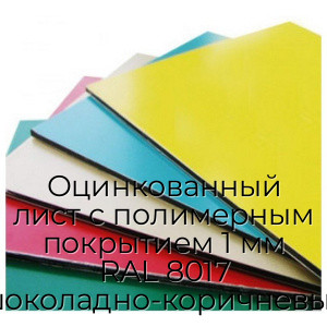 Компания «Арион-Металл» предлагает оцинкованный лист с полимерным покрытием толщиной 1 мм и шириной 1250 мм в цвете RAL 8017 с доставкой по Москве и регионам. Оформить заказ можно через наш сайт или по телефону.